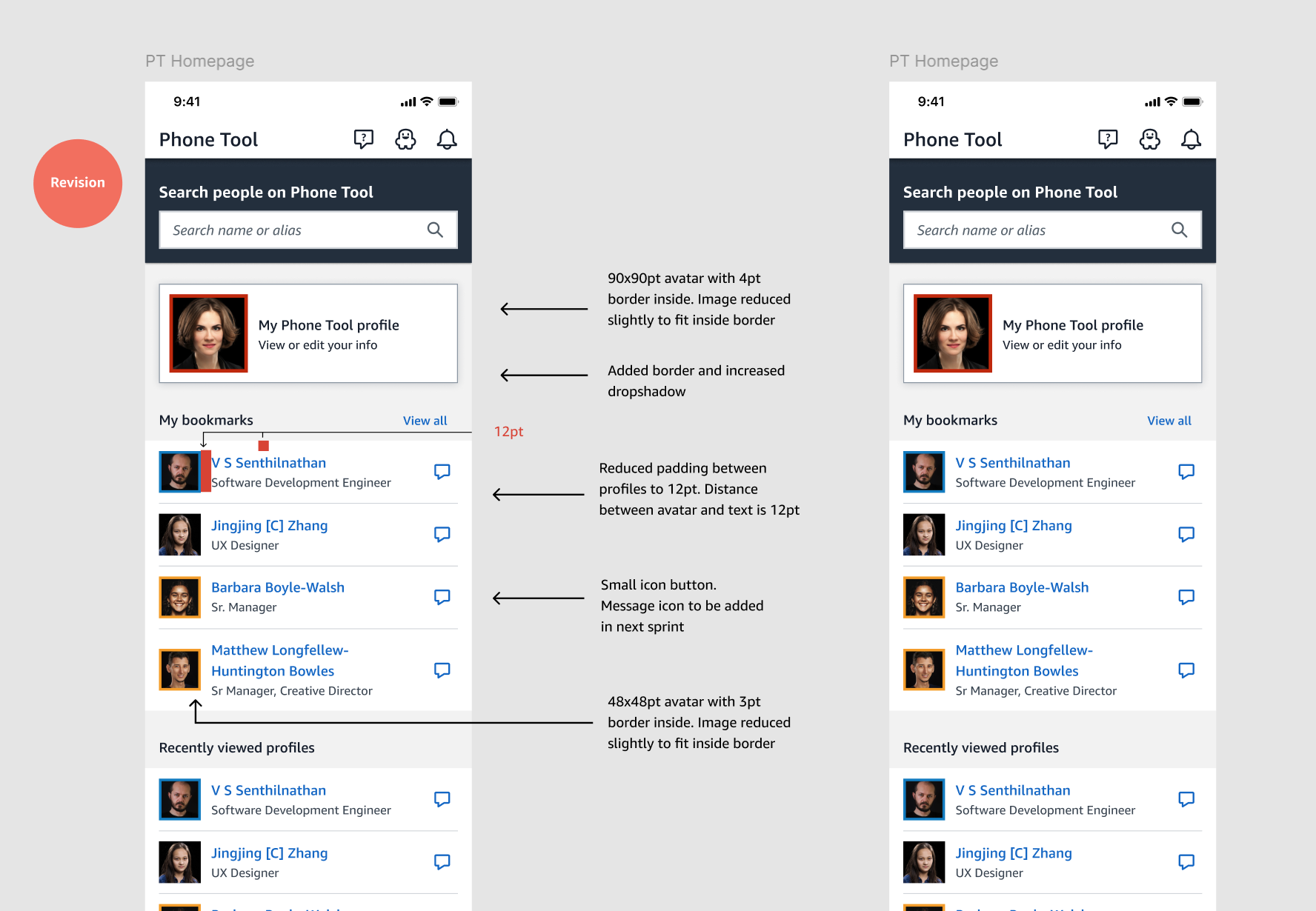 Multiple teams had provided concepts for what phonetool could become. We embraced those directions and worked to use it showcase stencil mobile but also how to integrate it into the inside Amazon experience for corp and the associate experience in A to Z.